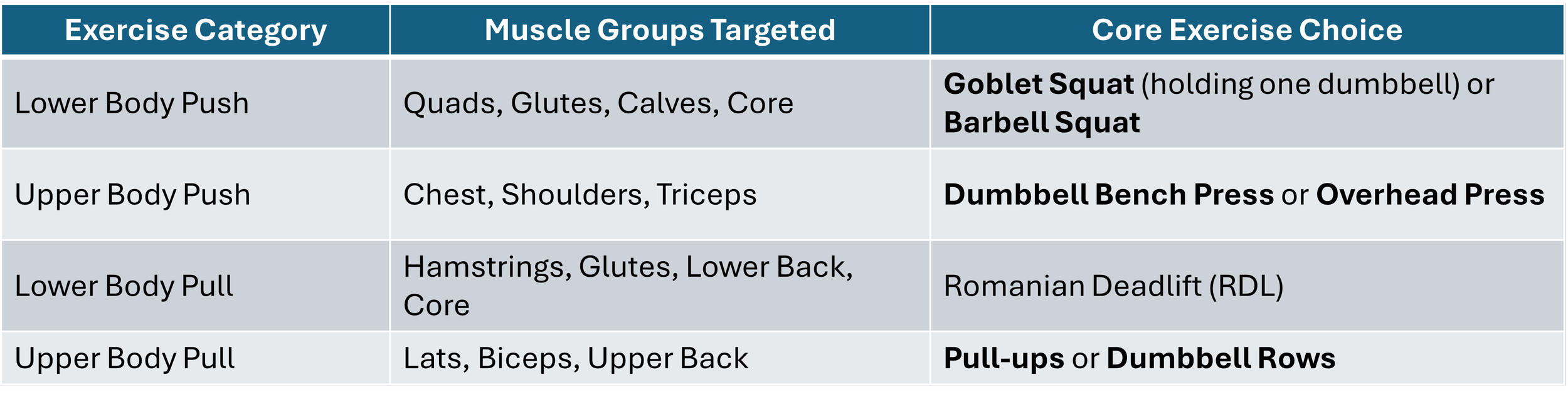 You can build a full-body, high-impact strength workout using just four core movements. If you can perform these four exercises, you've hit every major muscle group in your body and laid a rock-solid foundation for ageless strength.