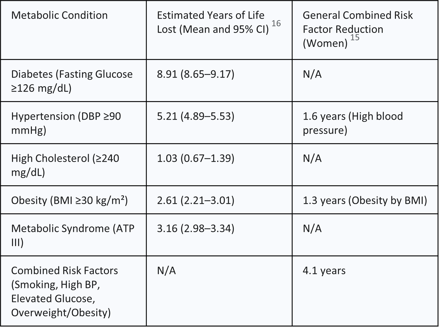 More granular data on specific cardiometabolic risks provides direct quantitative estimates of years of life lost for women: